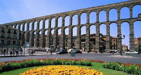 Nada mejor que iniciar el paseo por Segovia que por su famoso Acueducto. Se trata de una soberbia obra de ingenería civil romana de finales del siglo I A.C. El Acueducto mide 15 kilómetros y su punto más bello es el puente de doble arquería que atraviesa la plaza de Azoguejo, de 728 metros de largo y 29 metros de altura.