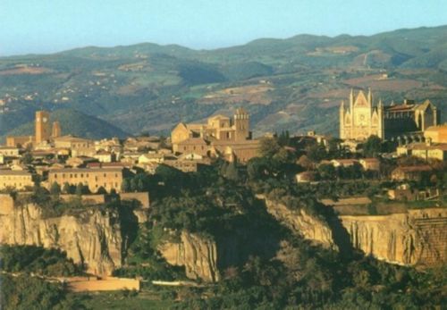 Orvieto es una bella y encantadora ciudad, situada en lo alto de una colina, perteneciente a la provincia de Terni en Italia. Orvieto cuelga de un enorme saliente rocoso de suave toba volcánica, pero su marcado desnivel se compensa con un funicular que separa el espetactular centro medieval y etrusco, en la cima, de la moderna zona de Orvieto Saclo en la parte baja.