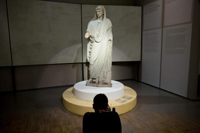 El lugar central de esta exposición son tres famosas estatuas del emperador romano: la de Augusto Pontifice Máximo hallada en la Via Labicana y que está en el museo de Palacio Máximo de las Termas; el Augusto desenterrado en Prima Porta y se encuentra en el Museo Vaticano; y el retrato de bronce del Museo Británico.