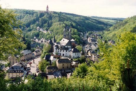 Frente a la iglesia se levanta la característica silueta de Castillo de Clervaux, fotogénica répica del original del siglo XII, arrasado durante la Segunda Guerra Mundial.